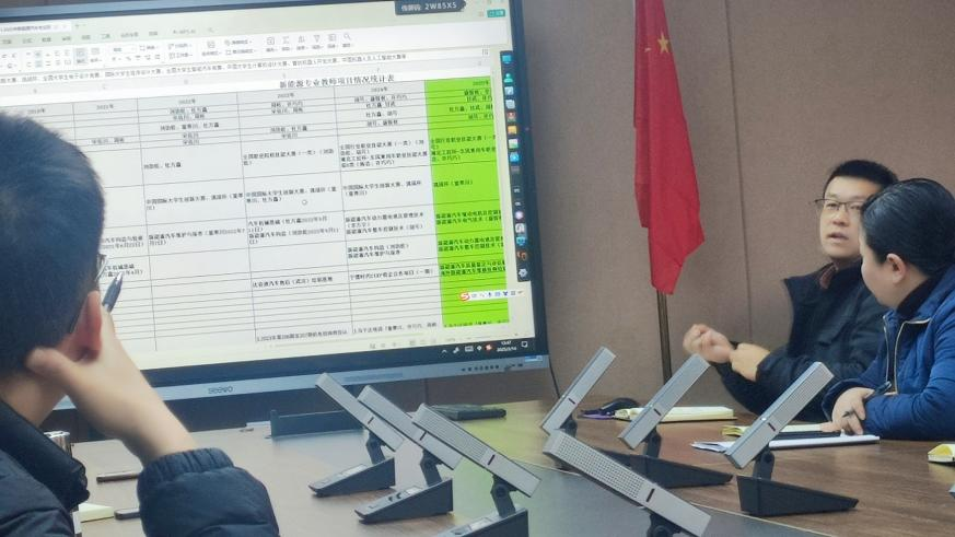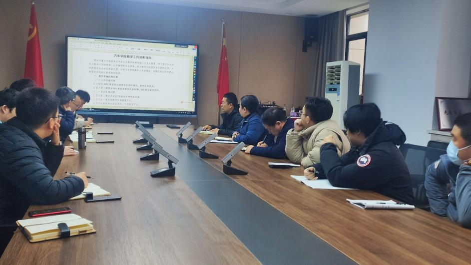 2025年3月14日汽车技术与服务学院新能源汽车技术教研室在行政楼712召开2025年3月教学工作会。本次会议由教研室主任刘劲松主持,新能源汽车技术专业教研室专任教师、辅导员等全体成员参会,学院领导吴艳丽、周志文也莅临会议现场进行工作指导。会议内容主要包括以下四个方面: