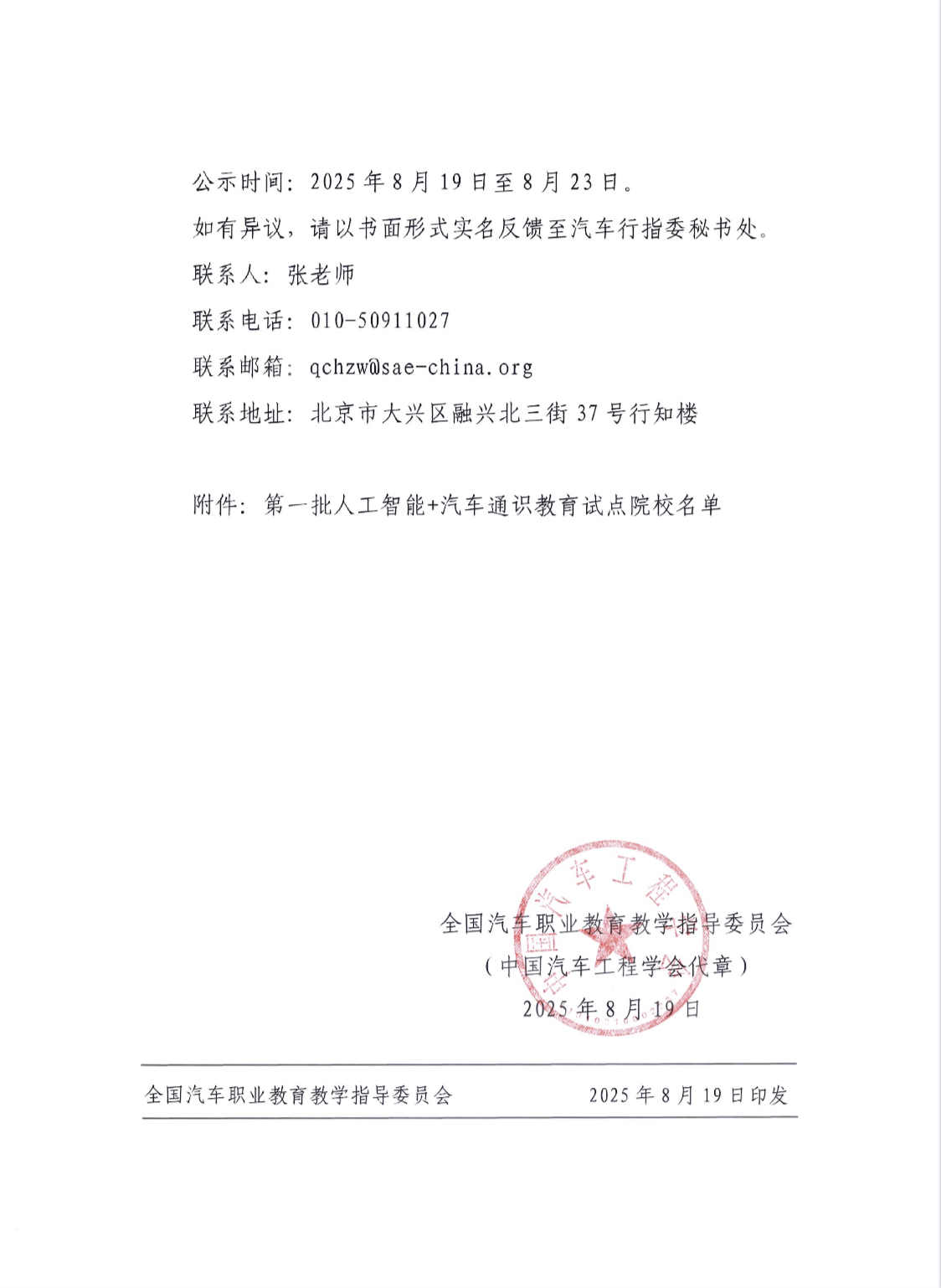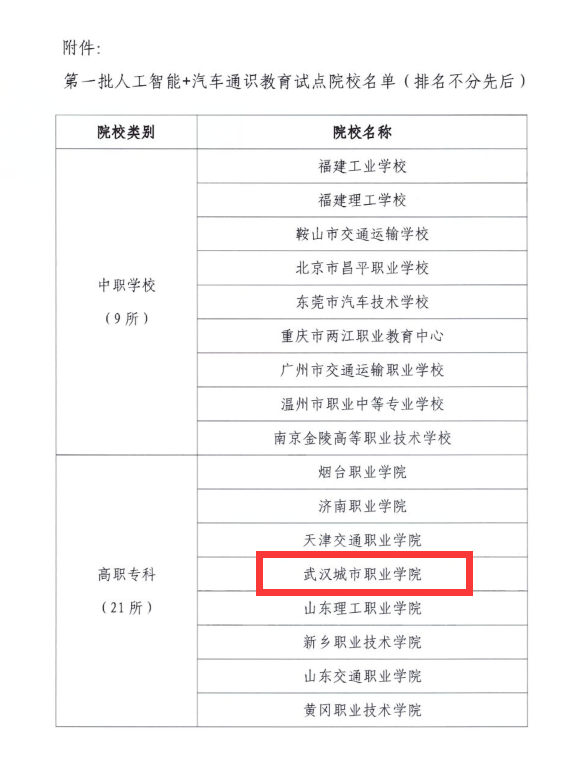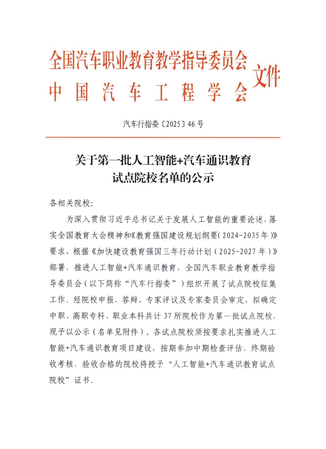在人工智能浪潮席卷各行业的当下,教育领域也正积极拥抱变革。近日,一则喜讯传来,武汉城市职业学院汽车技术与服务学院成功入选全国第一批人工智能+汽车通识教育试点院校名单。这一成果不仅是对学院过往努力的高度认可,更是为学院未来在人工智能与汽车融合教育领域的发展注入了强大动力。