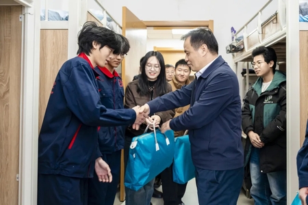 学校党委书记邓院方、相关职能部门领导老师深入我院学生宿舍,关切询问同学们的日常生活与学习情况,将饱含暖意的棉被送到学生手中,凛冽寒冬里涌动着真切关怀。