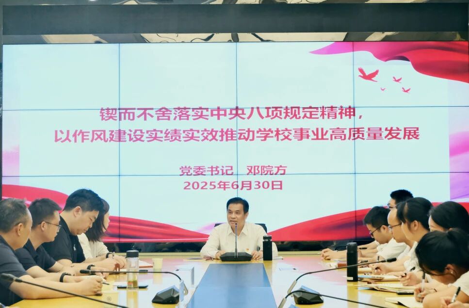 校党委书记邓院方讲授的“深入贯彻中央八项规定精神学习教育”专题党课,为活动注入强大思想动能。邓书记直面问题,精准锚定学校发展关键,强调必须将中央八项规定精神深度融入办学治校、立德树人全过程。他要求全体党员深学细悟习近平总书记关于作风建设的重要论述,深刻把握中央八项规定精神落实的成就经验,同时清醒认识高校领域存在的问题。在学校提档升级的攻坚阶段,邓院方号召大家以学促干,将作风建设的实际成效转化为推动学校高质量发展的强劲引擎,立足岗位展现新作为。