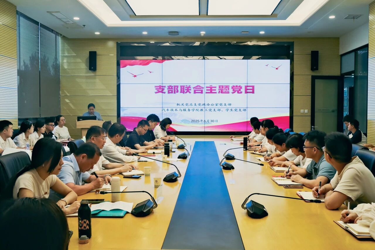 在庆祝中国共产党成立104周年之际,学校机关党总支党政办公室党支部与汽车技术与服务学院教工党支部、学生党支部44名党员齐聚一堂,在汽车技术与服务学院匠之家开展支部联合主题党日活动。汽车学院党总支书记吴艳丽主持,校党委书记邓院方出席并讲授专题党课。